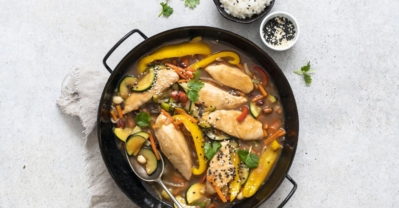 Kuřecí soté s arašídy a zeleninou