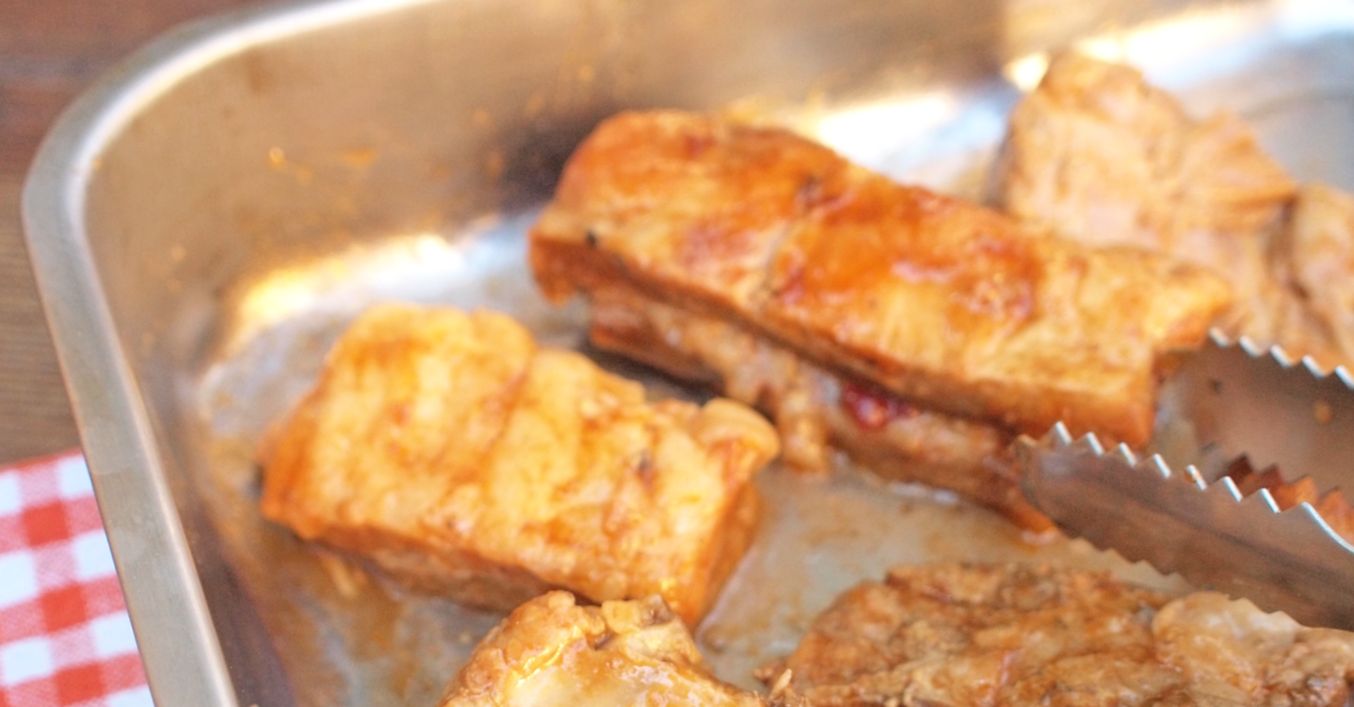 Žebírka rozložíme na pekáč, potřeme je zahuštěnou marinádou a dáme je péct do trouby asi na 45 minut. Při pečení je průběžně potíráme. Hotová žebra ihned podáváme.