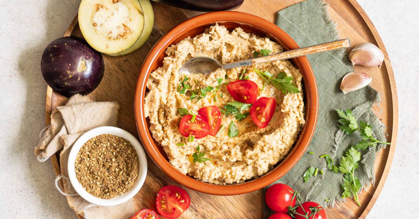 Lilek nechte vychladnout. Poté rozpůlte a dužinu vydlabejte. Dejte do mixéru spolu s pastou tahiny, citrónovou šťávou, česnekem, římským kmínem a olivovým olejem. Rozmixujte najemno.
