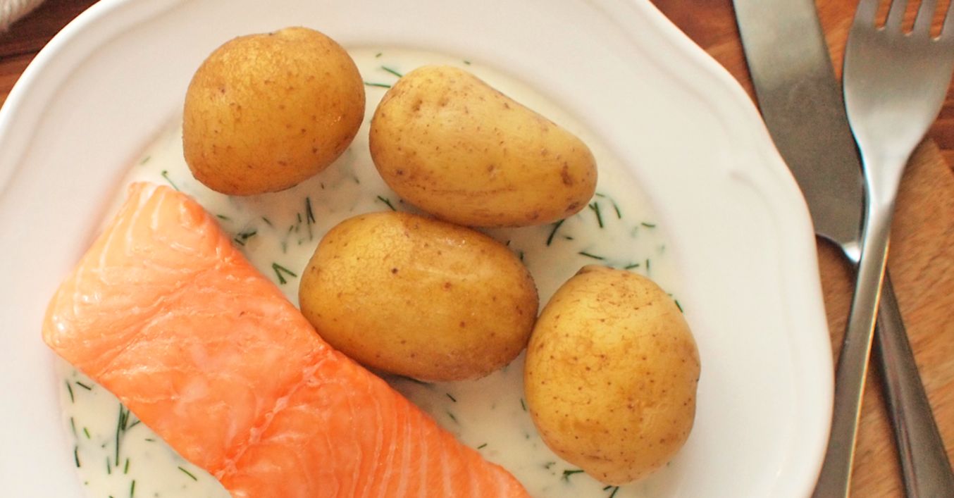 Připravenou omáčku odstavíme a vmícháme smetanu spolu s koprem. Už jen krátce ohřejeme, promícháme a podle potřeby dochutíme. Servírujeme společně s lososem.