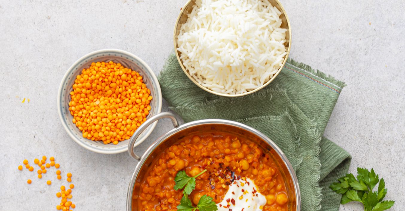 Luštěninové curry s rýží