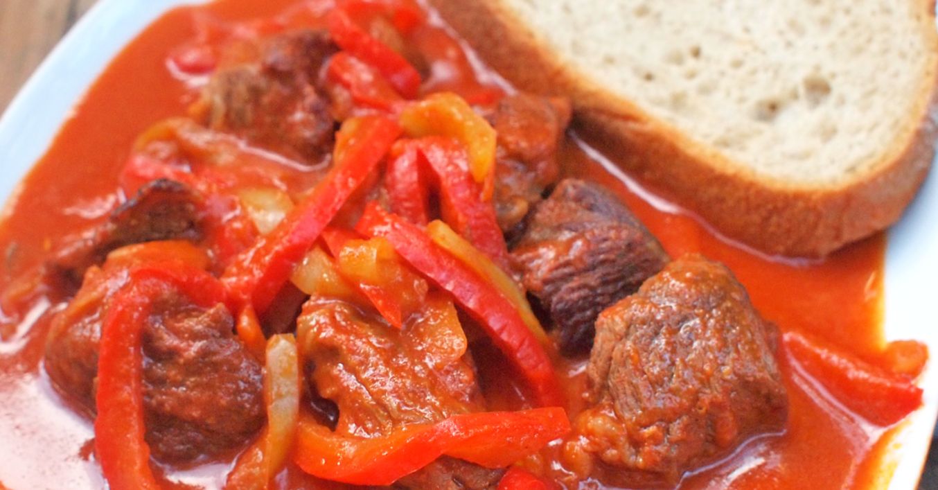 Zhruba půl hodiny před koncem přidáme ke guláši i nakrájenou papriku a společně s masem dodusíme doměkka.