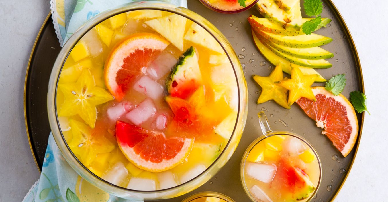 Malibu a šťávy smíchejte v punčové misce, přidejte kousky ovoce a nechte několik hodin vychladnout.