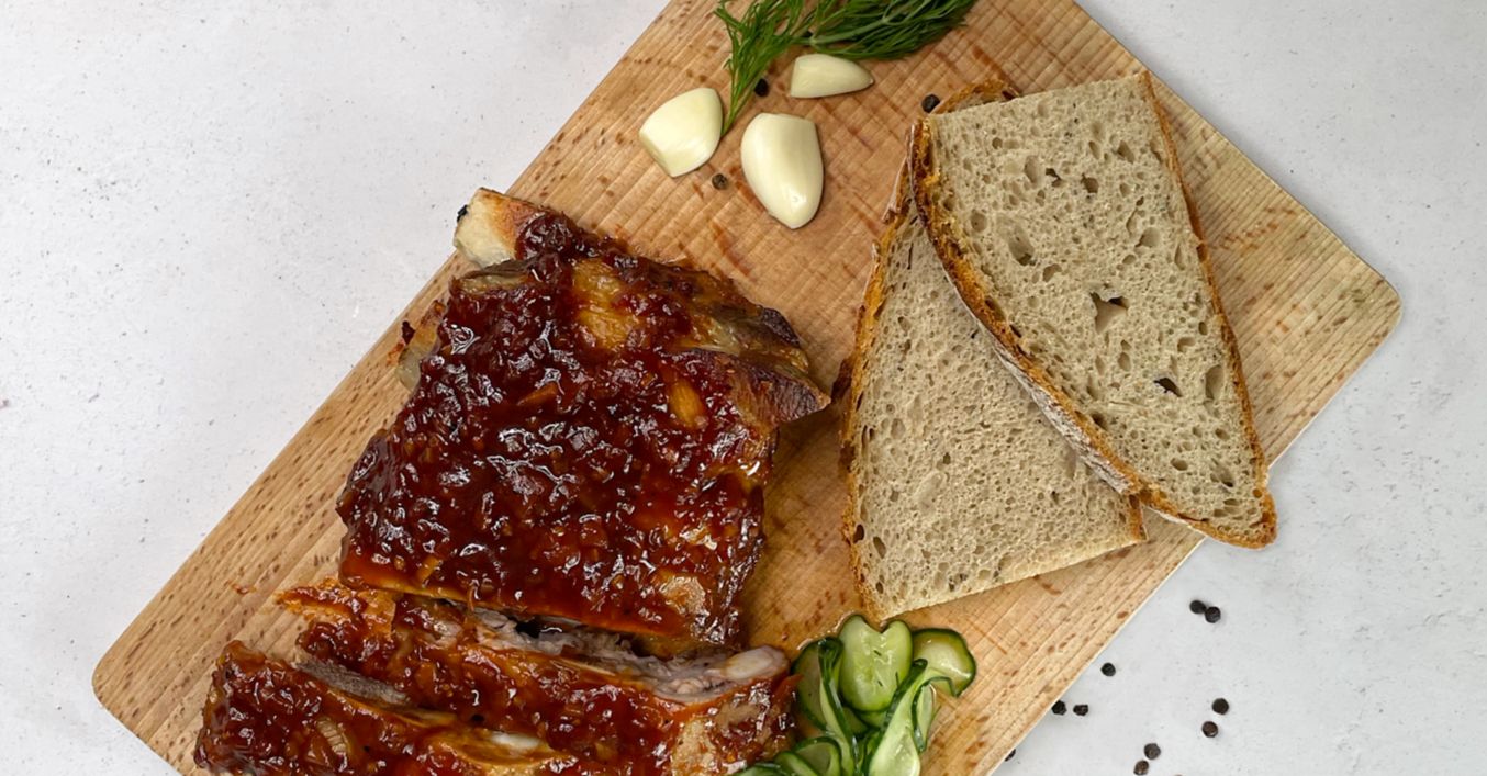 Když jsou žebra uvařená, potřete je marinádou a dejte ještě na hodinu do trouby na 140 stupňů celsia.