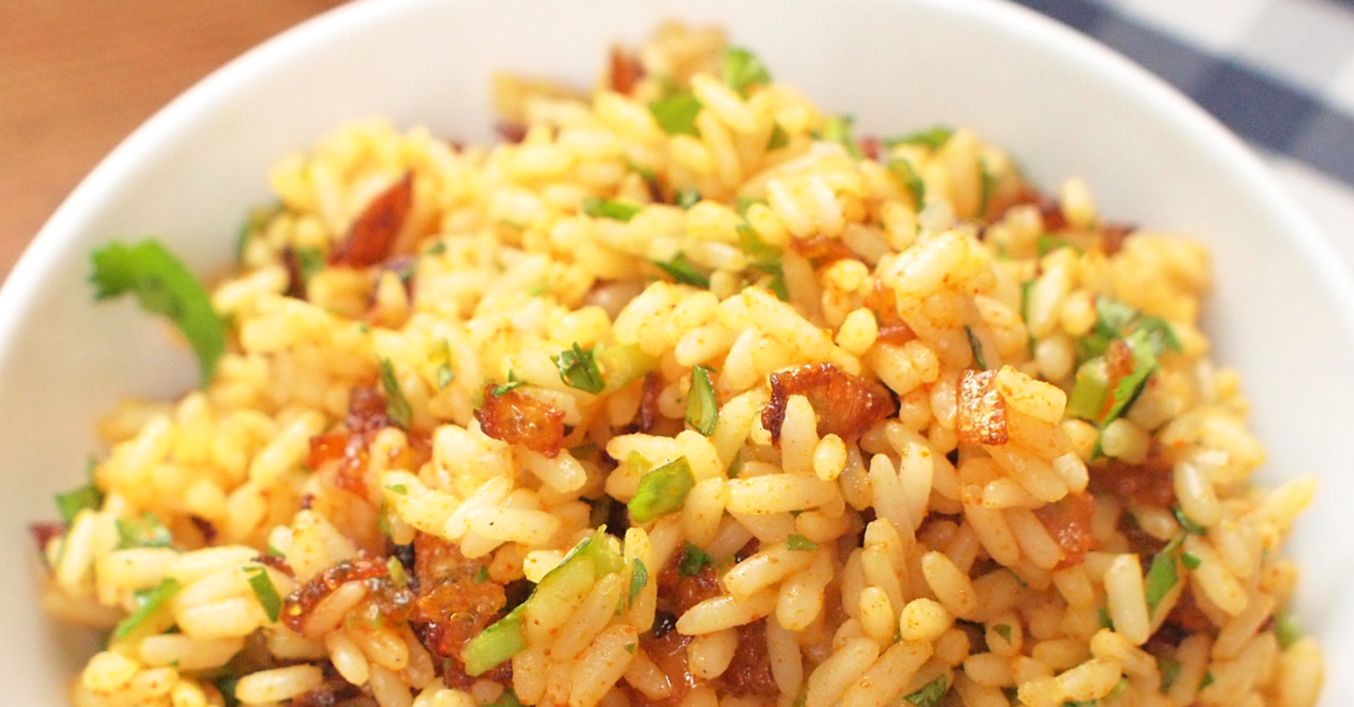 Dušenou rýži promícháme s bylinkami, křupavou cibulkou a kořením. Podle potřeby dochutíme solí a podáváme.