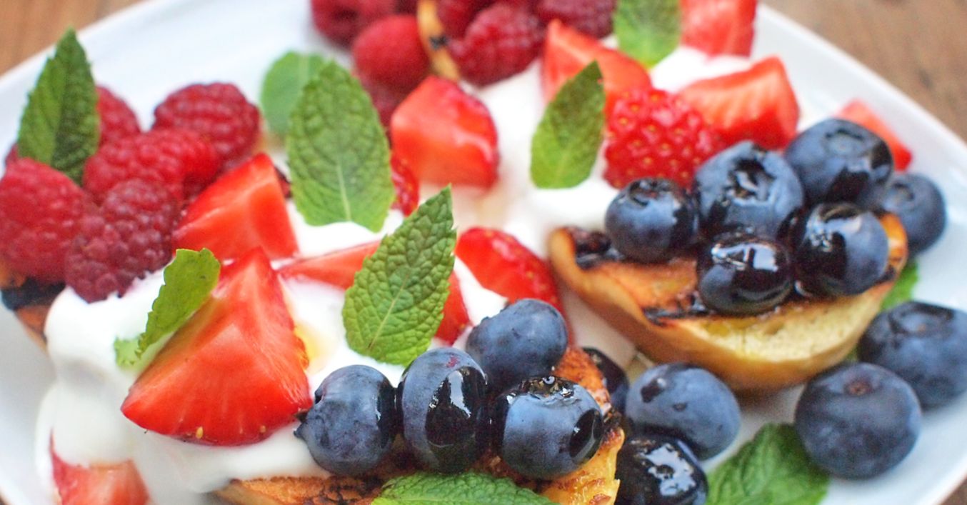 Briošky podélně rozpůlíme a krátce grilujeme dozlatova a dokřupava. Poté je potřeme rozpuštěným máslem a obložíme zakysanou smetanou a ovocem. Ihned podáváme.