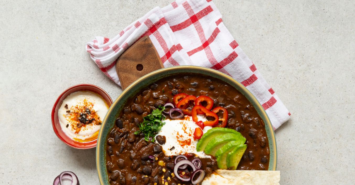 Mexické černé fazole s tortillou