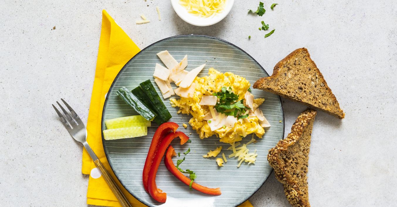 Vejce podávejte s pečivem, zeleninou a čerstvou petrželkou.