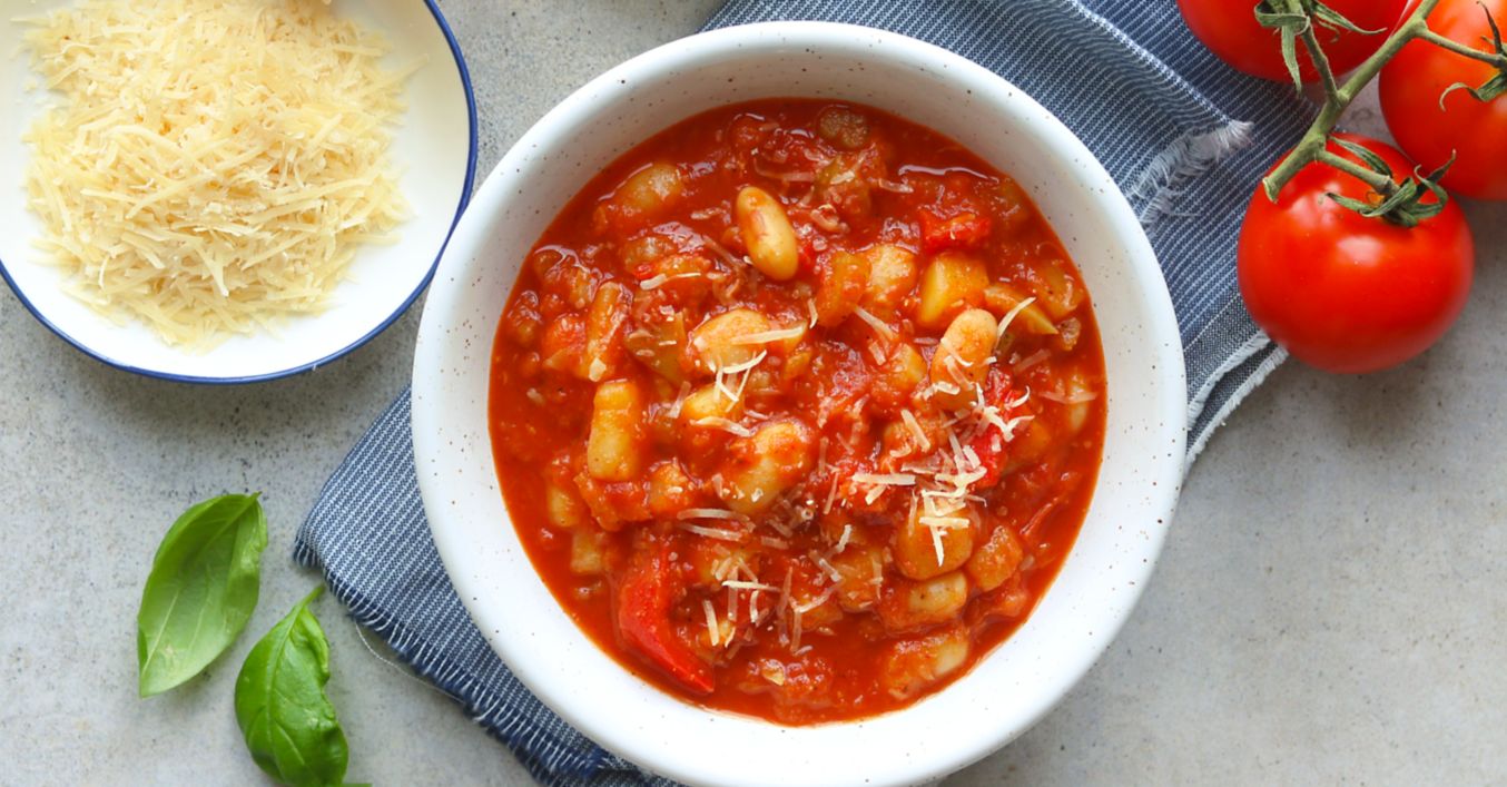 K zelenině přidejte rajčata, fazole a vodu. Vařte 15 minut do změknutí zeleniny.