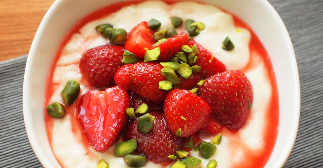 Mléčná rýže s jahodami