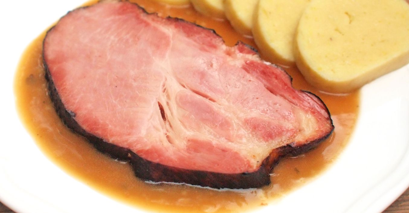 Upečenou krkovici dáme stranou. Cibuli s výpekem zalijeme trochou vroucí vody a odvaříme. Slijeme do rendlíku a vyrestujeme na tuk. Vmícháme lžíci másla, přidáme mouku a krátce orestujeme. Zalijeme vodou nebo trochou vývaru a povaříme asi 15 minut. Podáváme pak s pečenou krkovicí, kterou nakrájíme na plátky.