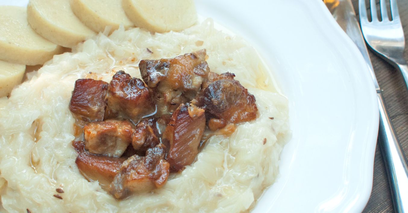 Maso v pekáčku vyjmeme z trouby. Mělo by být upečené hezky dohněda se šťávou na dně pekáčku. Pokud se nám šťáva příliš vypekla, přeložíme maso stranou a do pekáčku, který postavíme na sporák, dáme několik lžic horké vody. Vodu se šťávou necháme trochu provařit, případně ze dna pekáčku uvolníme připečeniny. Poté maso vrátíme zpět, vše promícháme a můžeme servírovat spolu s bramborovým knedlíkem se zelím.