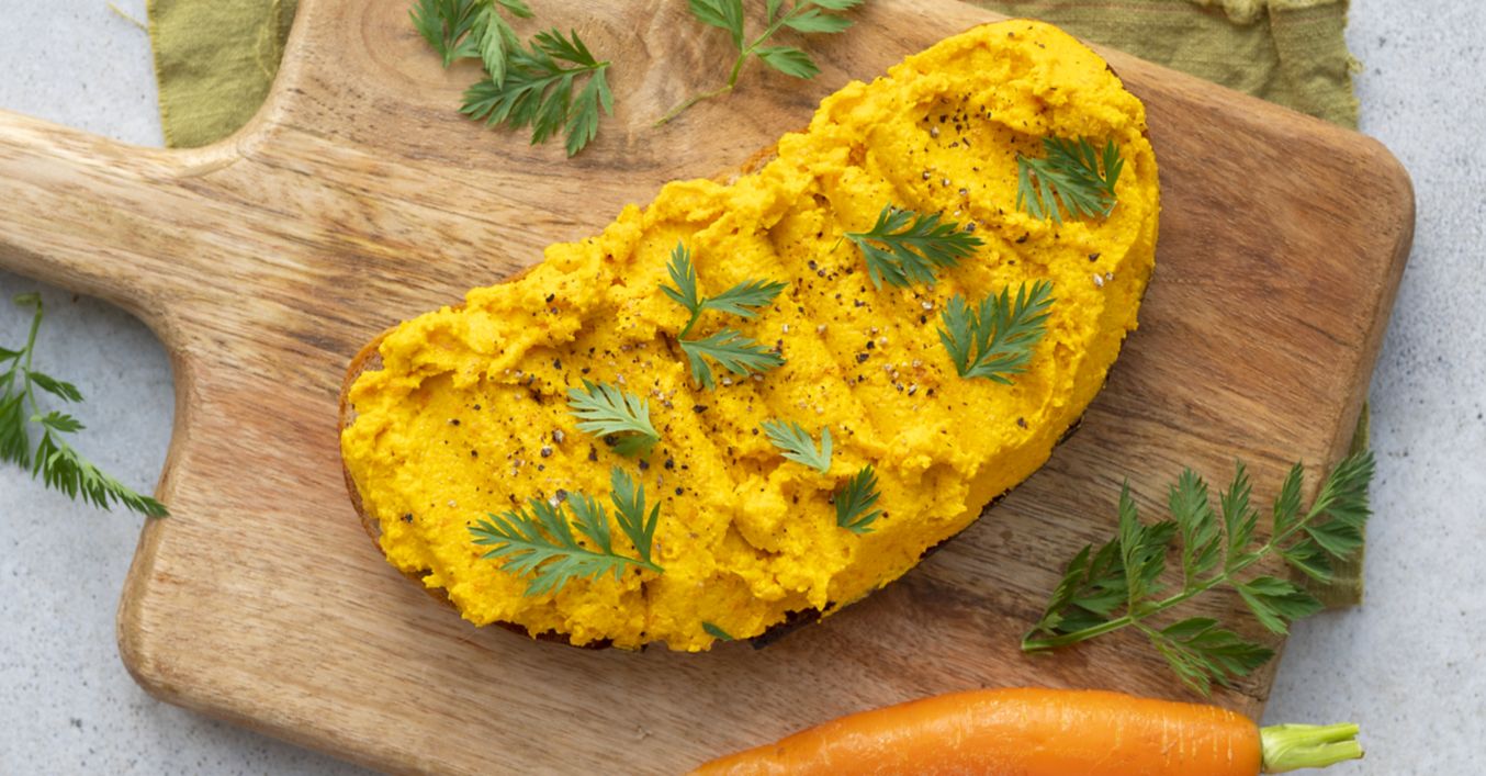 Upečenou mrkev rozmixujte s tvarohem, octem, solí a pepřem. Pomazánku mažte na chléb a ozdobte čerstvou mrkvovou natí.