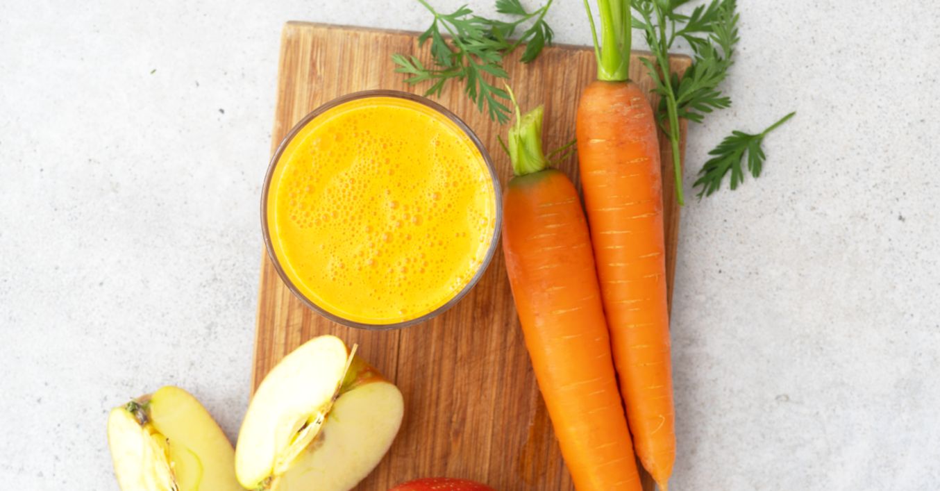 Mrkev, jablko, pomeranč a citrón odšťavněte. Hned podávejte.