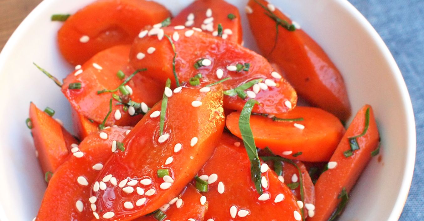 Vařenou mrkev poté promícháme se zálivkou a čerstvými bylinkami. Necháme chvíli odležet a podáváme.