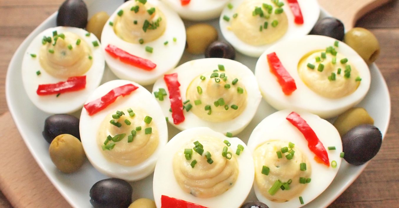 Žloutky vyjmeme a utřeme se změklým máslem a hořčicí. Vmícháme bylinky a dochutíme solí, pepřem a trochou citronové šťávy.