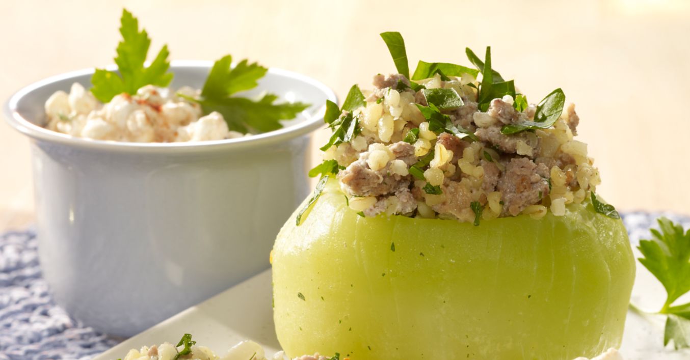 Kedlubny očistíme a oloupeme. Poté je z jedné strany seřízneme a pečlivě vydlabeme ve středu tak, abychom si vytvořili prostor pro náplň. Vykrojené zbytky nakrájíme na kostičky. Bulgur připravíme podle návodu na obalu ve 300 ml vývaru.