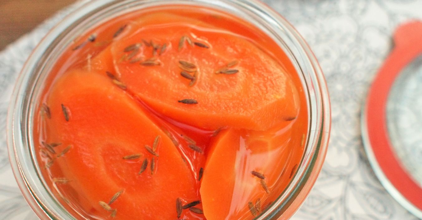 Římský kmín nasucho opražíme na pánvi. Ocet, vodu, cukr, sůl a římský kmín spolu svaříme. Hotovým lákem zalijeme mrkev, zakryjeme a dáme do lednice na uležení.