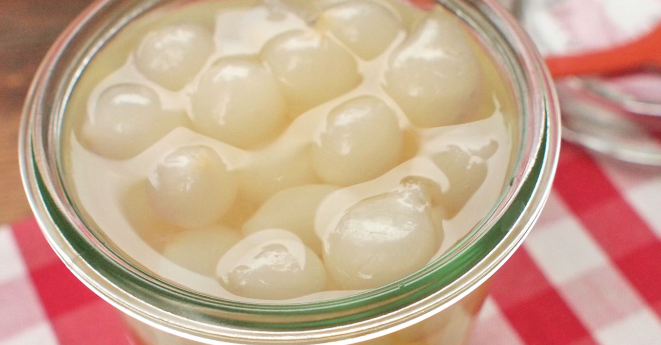 Cibulky oloupeme a krátce spaříme ve vroucí vodě. Propláchneme studenou vodou a necháme okapat. Suroviny na nálev svaříme.