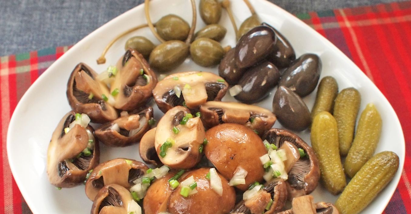 V míse spolu smícháme houby, šalotku, ocet, olej, worcester, bylinky, sůl, cukr a čerstvě mletý pepř. Zakryjeme, přendáme do lednice a před podáváním necháme odležet.