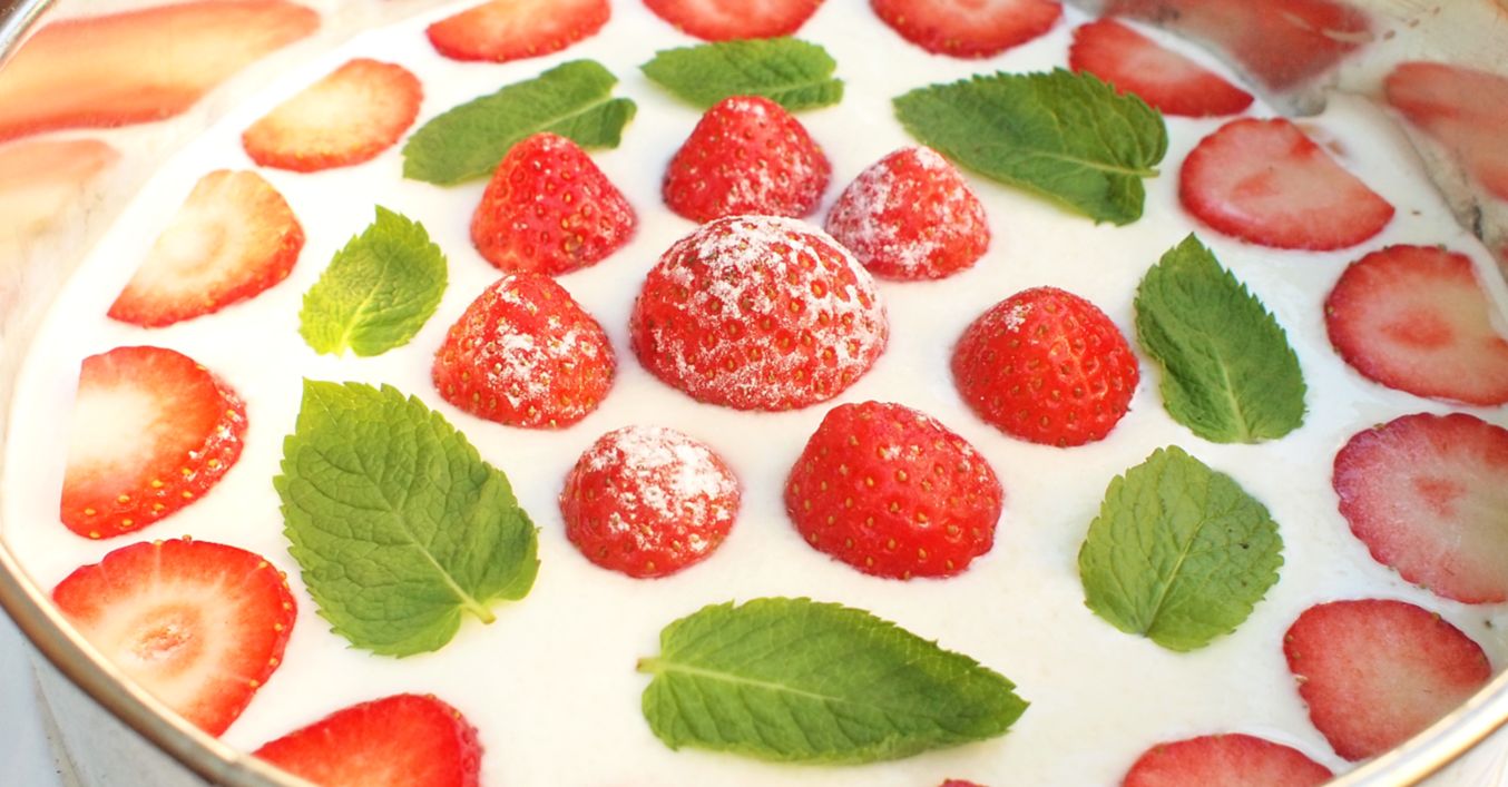 Nepečený dort s jahodami