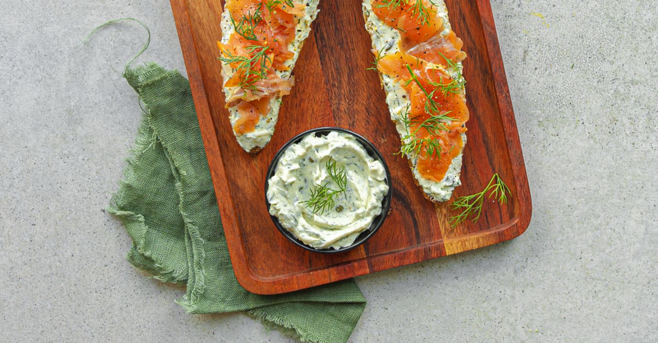Obložená bageta s krémovým sýrem, koprem a uzeným lososem