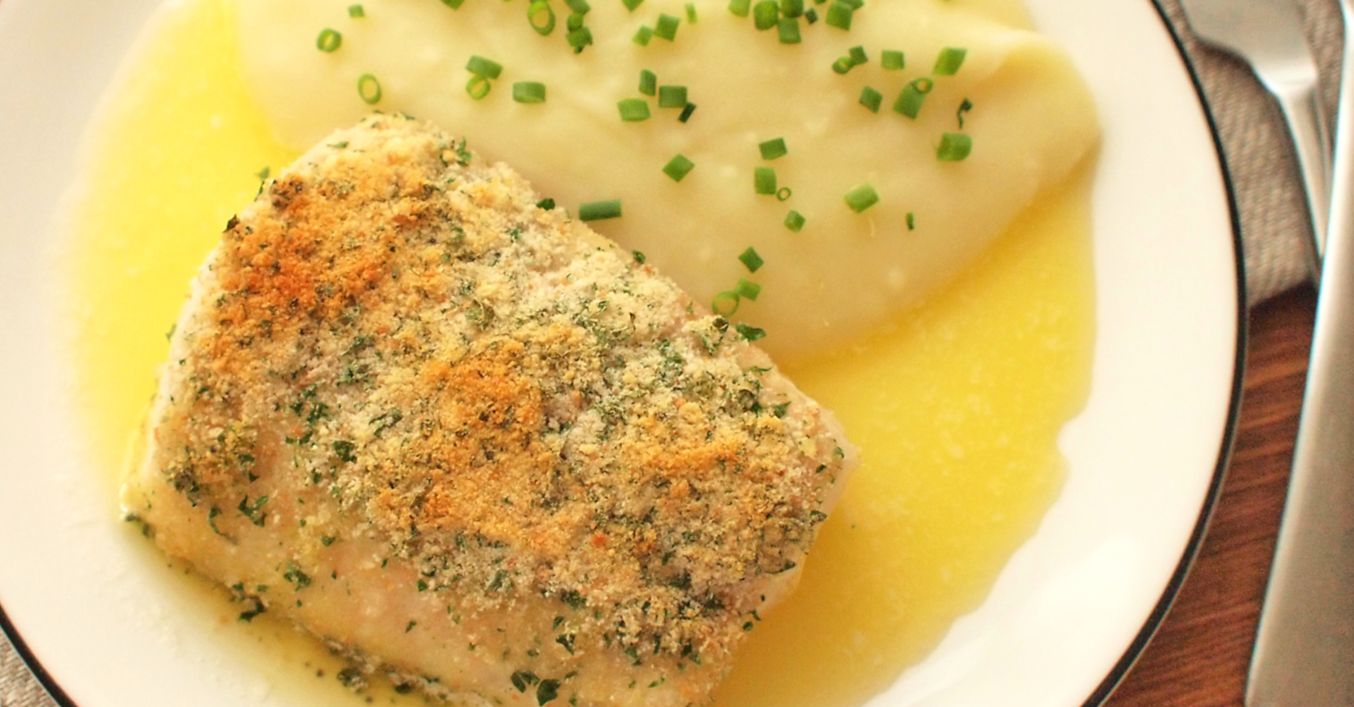 Připravené filety vyjmeme a potřeme rozpuštěným máslem. Zasypeme připravenou panádou a dáme na pekáček nebo do zapékací misky, kterou jsme potřeli zbylým máslem. Poté pečeme v troubě rozehřáté na 220 °C asi 10 až 15 minut. Ke konci můžeme bylinkovou krustu zapéct rychleji s pomocí zapnutého horního grilu.