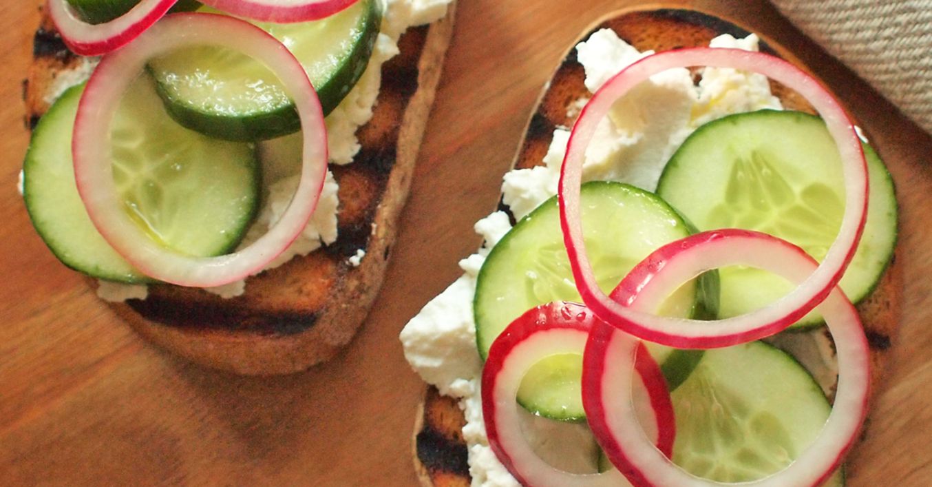 Okurkové toasty s marinovanou cibulkou