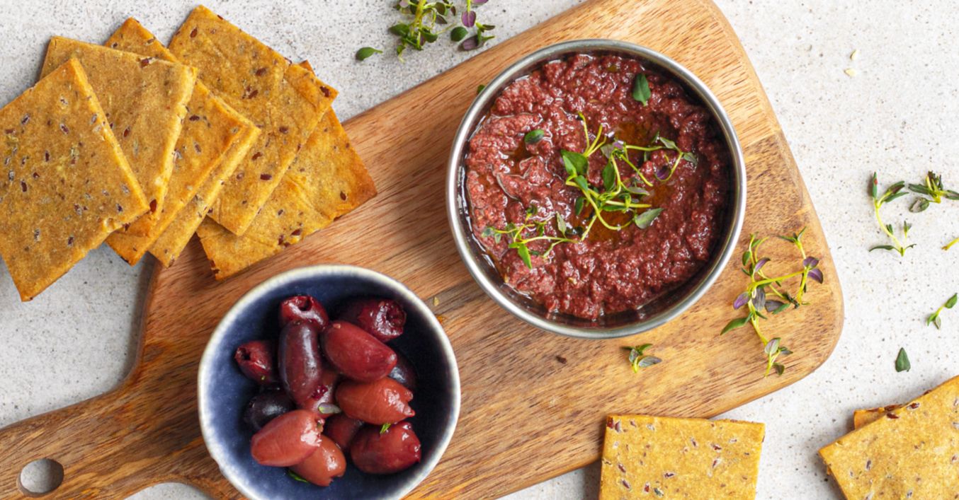 Olivy rozmixujte s olejem a tymiánem najemno. Podávejte s krekry.