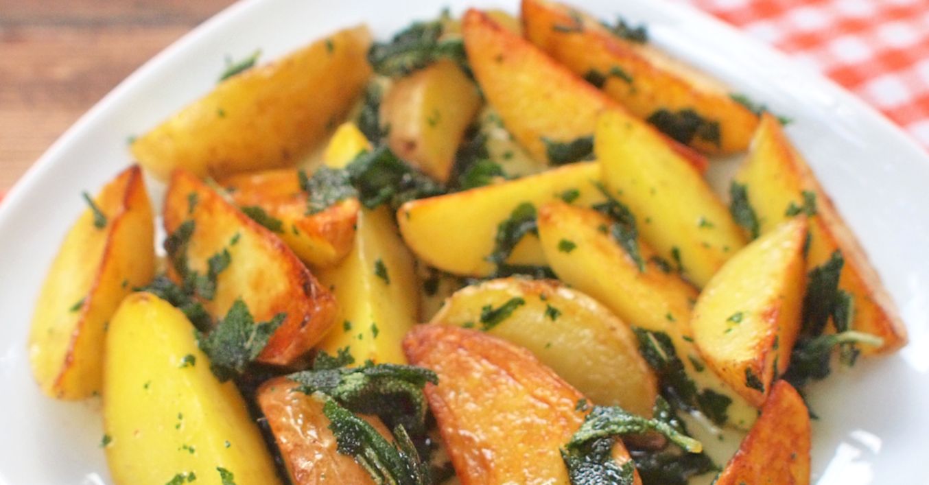 Když jsou brambory opečené, přidáme k nim šalvěj s máslem a rozmícháme. Dochutíme solí a podáváme.