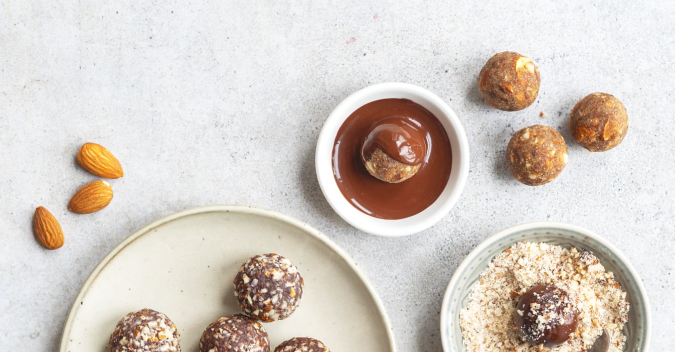Ořechové kuličky s mandlemi a čokoládovou polevou