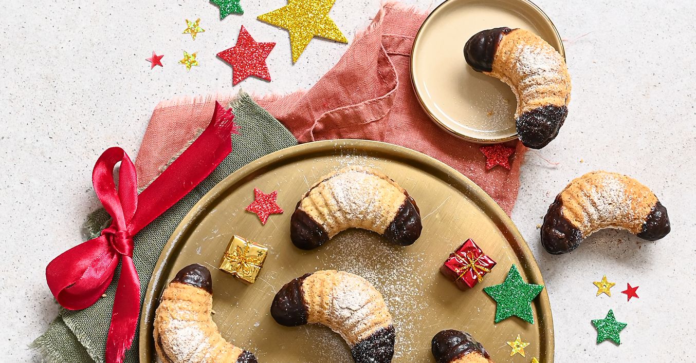 Ořechové rohlíčky plněné kakaovým krémem