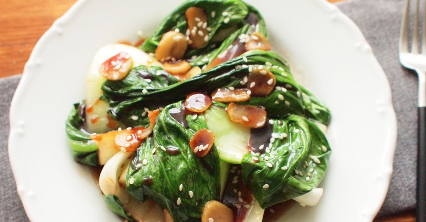 Poté přidáme pak choi a sójovou omáčku. Pořádně promícháme a restujeme, dokud pak choi nezměkne. Odstavíme a vmícháme sezamový olej a sezam. Podle chuti osolíme a opepříme.
