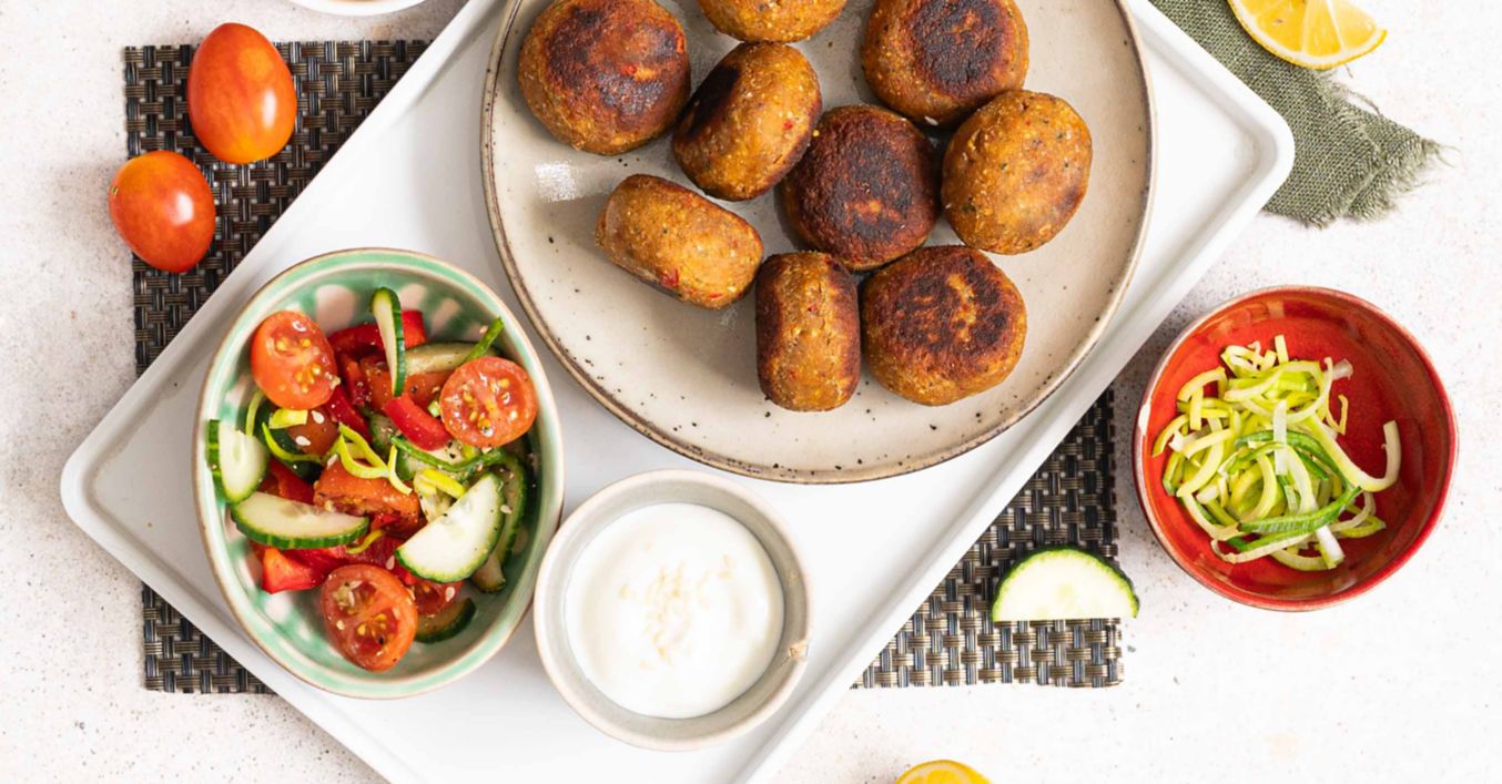 Všechny suroviny na dip promíchejte. Podávejte s připraveným falafelem.