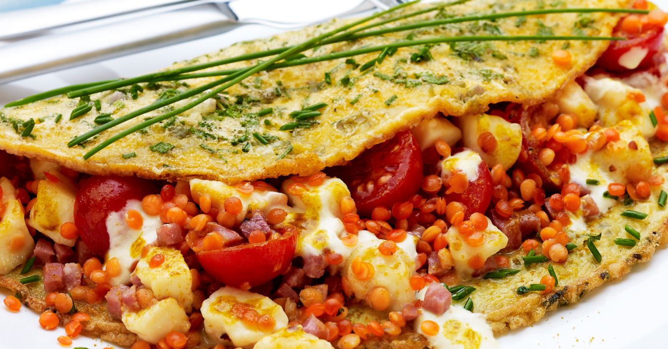 Uvařenou čočku smícháme se zakysanou smetanou, šunkou, rajčaty a mozzarellou nakrájenou na kostičky. Vzniklou směsí pak plníme palačinky a podáváme.