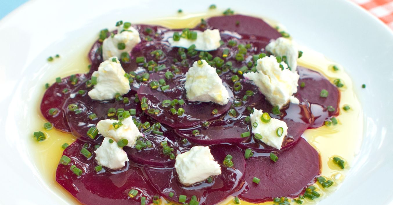 Plátky řepy necháme odstát v chladu a poté je podáváme za studena. Marinovanou řepu rozložíme na talíři a zasypeme hrudkami tvarohu.
