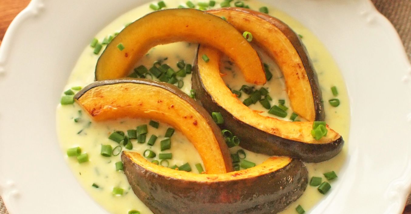 Zalijeme mlékem, rozmícháme a přivedeme k mírnému varu. Povaříme asi 10 až 15 minut. Přidáme nastrouhaný sýr a necháme rozpustit. Přidáme špetku muškátového oříšku a čerstvé bylinky. Poté podáváme s pečenou dýní.
