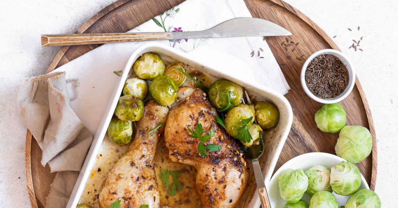 Pečená kuřecí stehna na kmínu s kapustičkami
