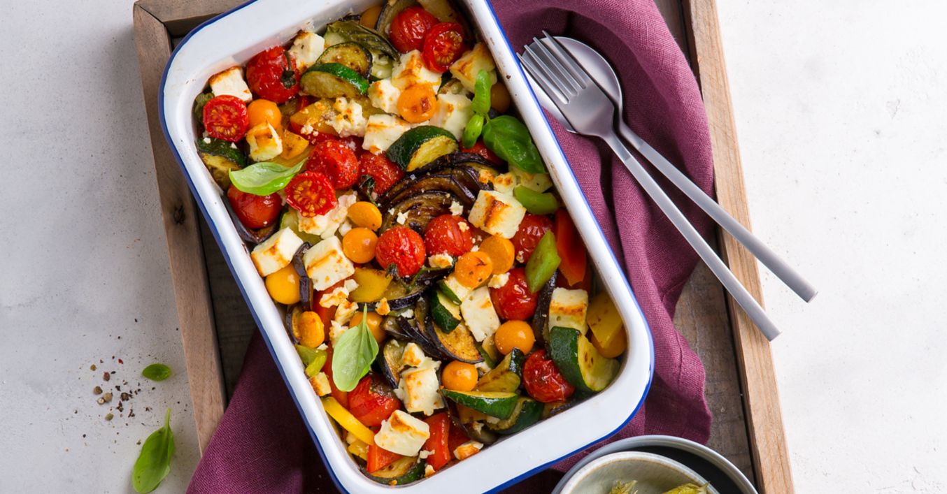 Pečte v troubě na 200 °C asi 25 minut. V polovině doby pečení zeleninu jednou promíchejte.