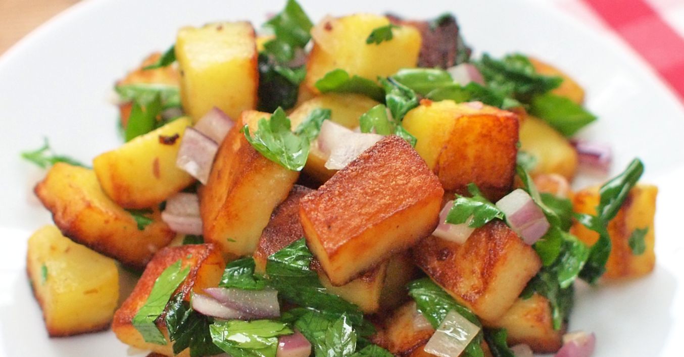 Pečené bramborové kostky s petrželovým salátem