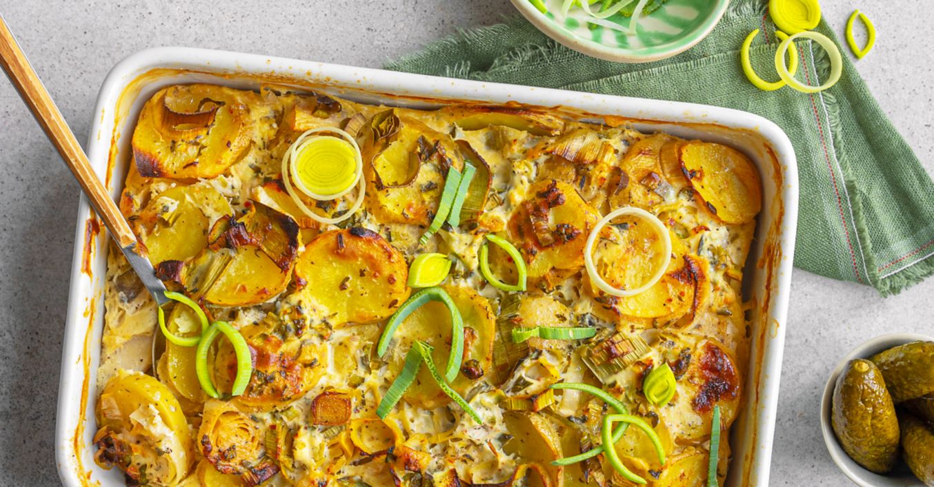 Pečené brambory s pórkem a vejci