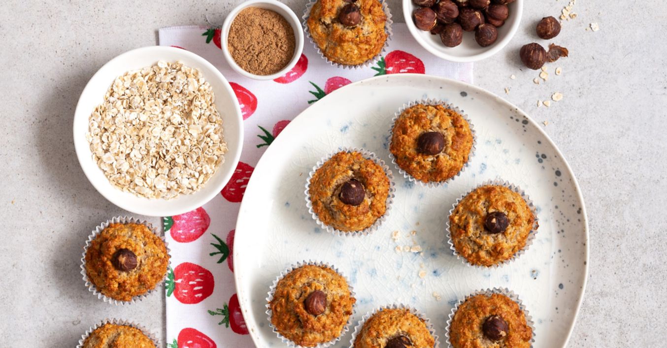 Vločky promíchejte s moukou, škrobem, kypřícím práškem do pečiva, ořechovým máslem, citrónovou šťávou, medem, kokosovým olejem a skořicí.