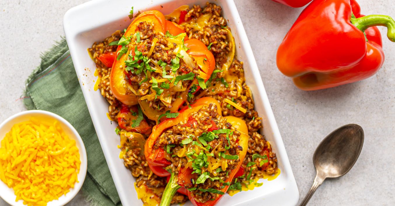 Pečené papriky plněné rýží a mletým masem