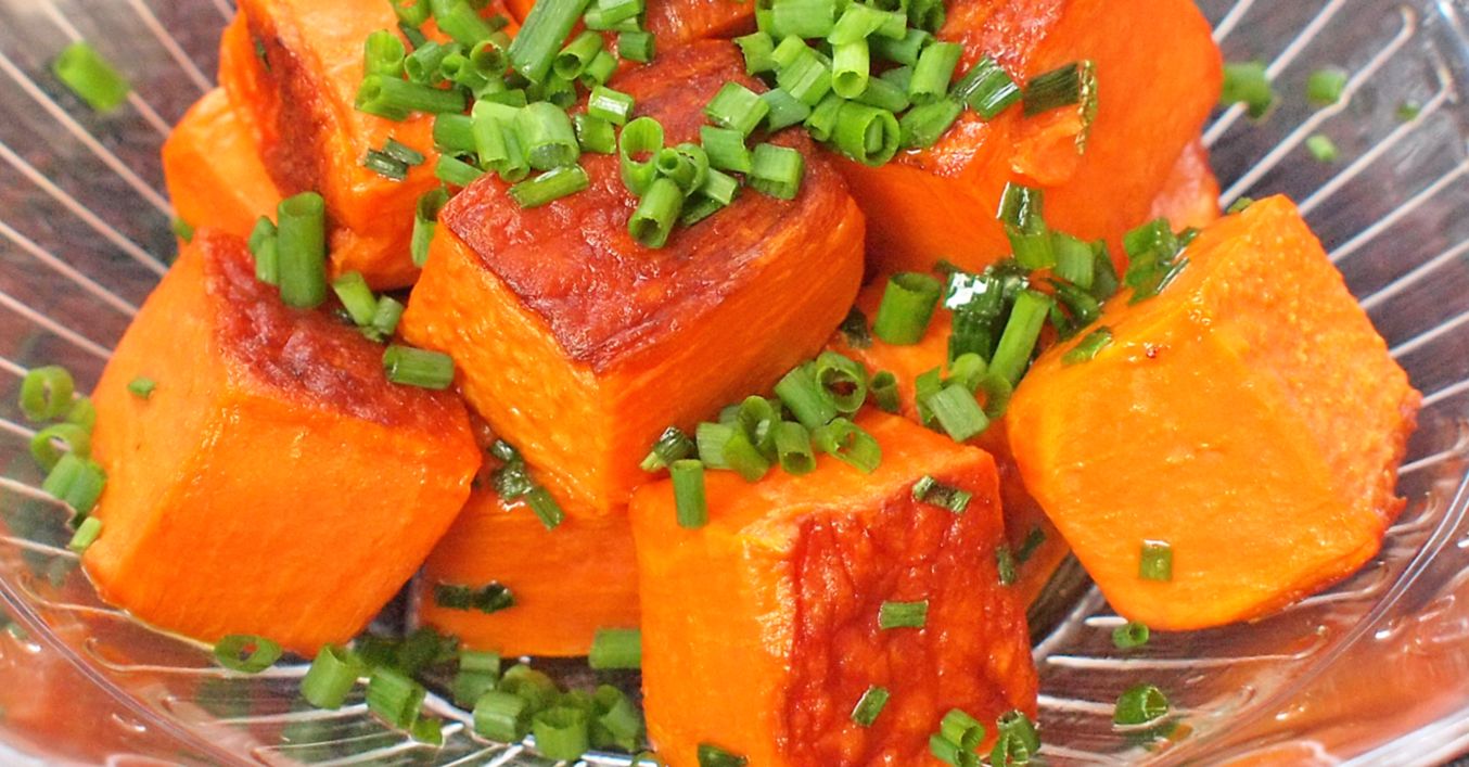 Sladké brambory očistíme, oloupeme a nakrájíme na stejně velké kostky (asi 2 cm). Důkladně je osolíme, opepříme a promísíme s olejem.