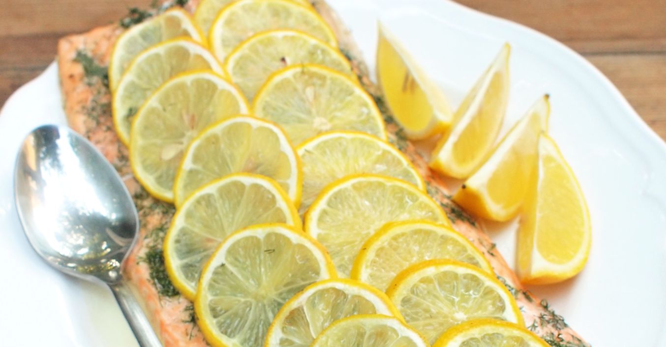 Kopr očistíme, osušíme a nasekáme nadrobno. Citrony důkladně umyjeme a nakrájíme na plátky. Odleželý filet osušíme a přendáme na pekáč nebo do zapékací misky vytřené olejem (nebo na pečící papír). Přidáme nadrobno nasekaný kopr a rozložíme plátky citronu.