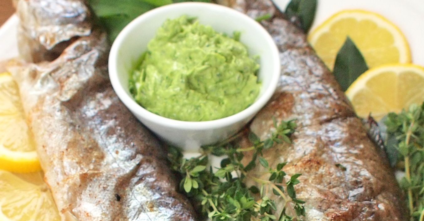 Pečený pstruh s máslem z medvědího česneku