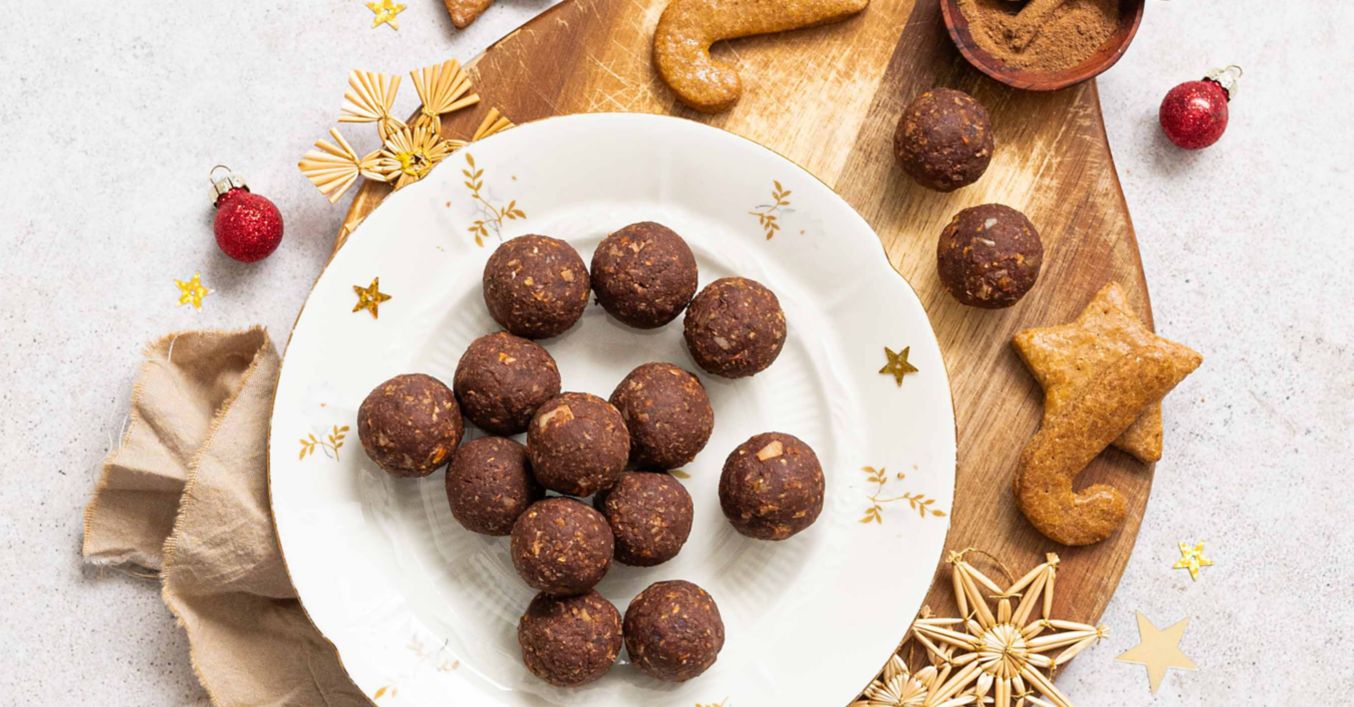Perníčky rozmixujte najemno, ořechy a brusinky nahrubo pokrájejte. Promíchejte s máslem, medem a kakaem.