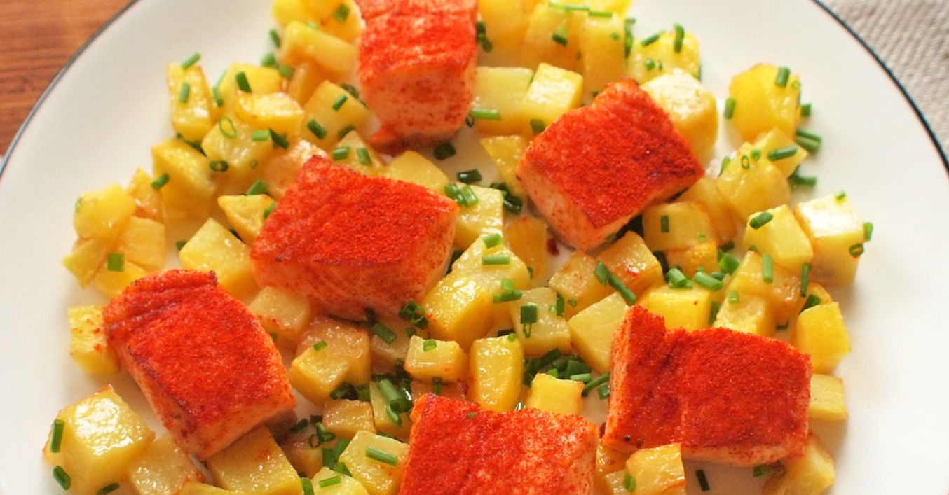 Pikantní lososové kostky s bramborami