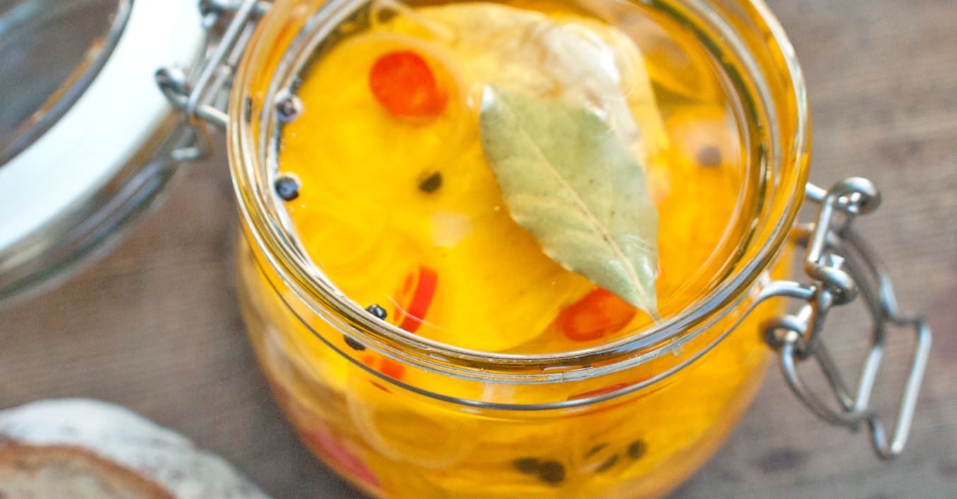 Do větší sklenice s víčkem klademe střídavě hermelíny, feferonky a zbývající cibuli. Každý sýr vždy zalejeme olejem a přidáme čtvrtinu koření. Toto celé opakujeme, dokud nevyplním celou sklenici.