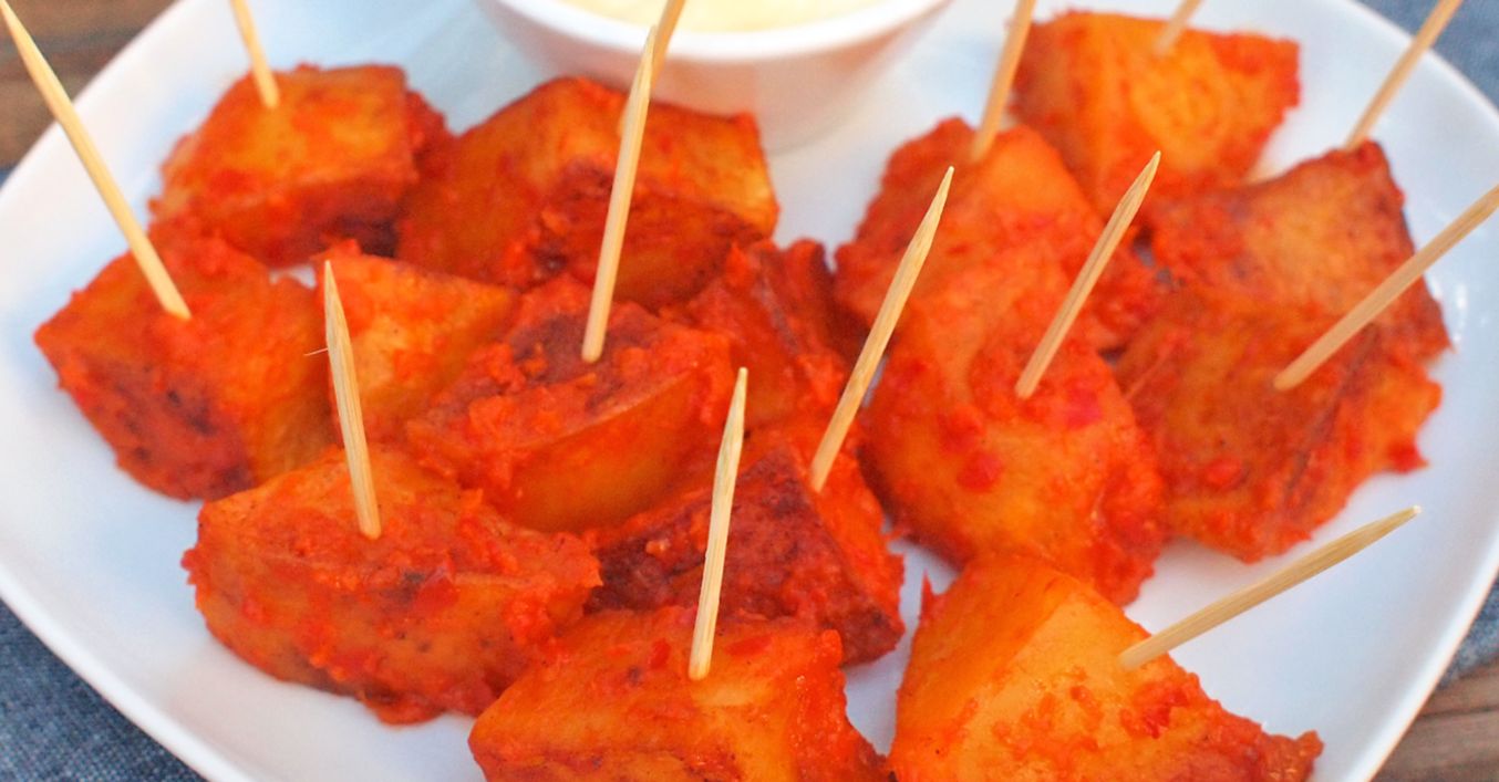 Hotové brambory v pánvi dobře osolíme a odstavíme. Vmícháme ajvar, harissu a tabasco. Promícháme a ihned podáváme.